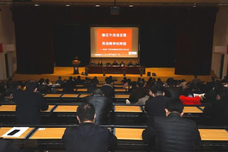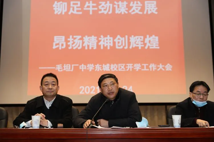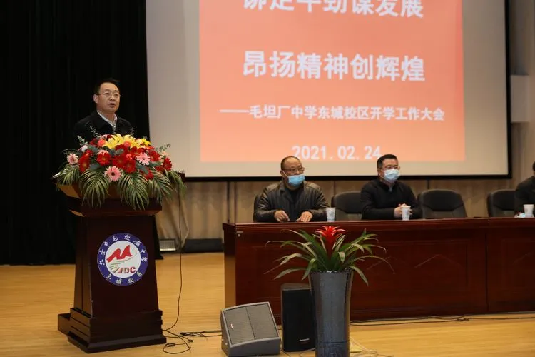 牛年春光好,东校士气高。2月24日晚六点,毛坦厂中学东城校区在文博馆报告厅隆重召开新学期开学工作大会,毛坦厂中学党委书记、校长、毛中东校校长余存宝,毛中东校党总支书记、常务副校长张德建,毛中东校副校长、毛中东校附属学校校长张本林以及毛中东校全体教职工出席大会,大会由毛中东校副校长李多权主持。