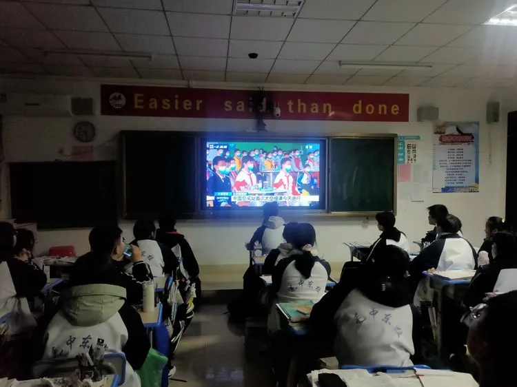 为进一步激发青年学生的好奇心和创造力,积极引领培养学生们崇尚科学、钻研科学的热情,在紧张的学习之余,毛中东校高三年级部利用周日晚自习时间组织高三学生收看一堂大开眼界的“天宫课堂”。