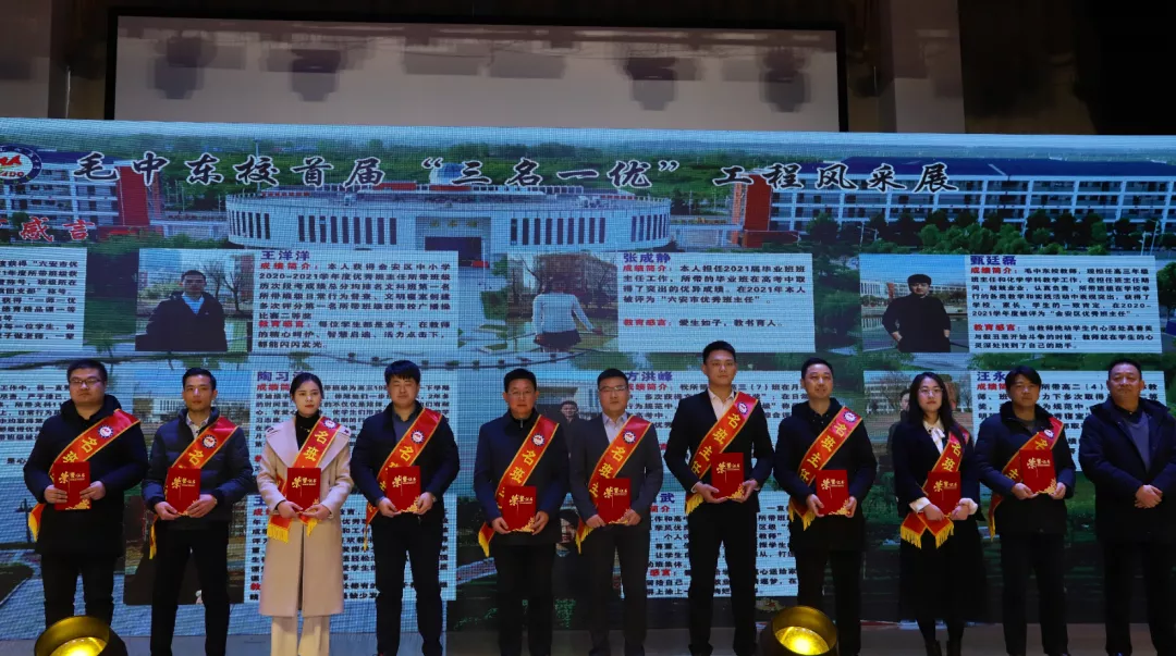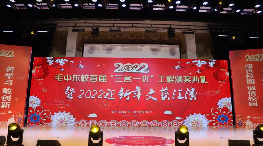 屹立东城,好景如画,秉笔杏坛美校园。毛中精神,天道酬勤,谱写教育新华章。冬天已过半,春天在招手。值此万象更新、2022元旦即将到来之际,毛中东校举办 首届“三名一优”工程颁奖典礼暨2022迎新年文艺汇演。