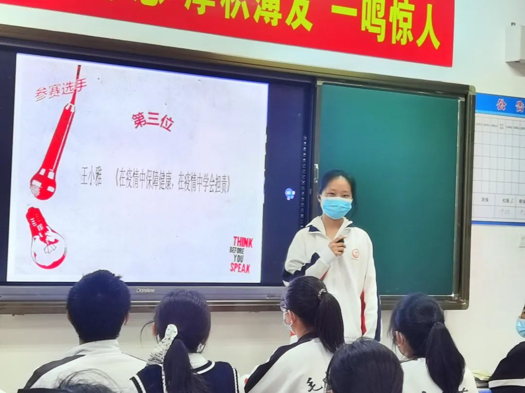 活动以班级为单位,各班自行组织,评选。同学们精神饱满、娓娓道来,用充沛的感情把师生带进了一个个温暖感动的战疫故事,讲出了“逆行者”们的无私奉献,讲出我校学子在学校抗疫大局中闪烁着的青春光芒。